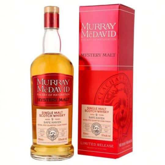 Murray Mc David Safe Haven 9 jaar heeft in zijn geuren aroma’s van turf, rogge, banaan, vanille en citrus. Deze whisky heeft in zijn smaak tonen van kruiden, turf, mout, vanille en rogge.